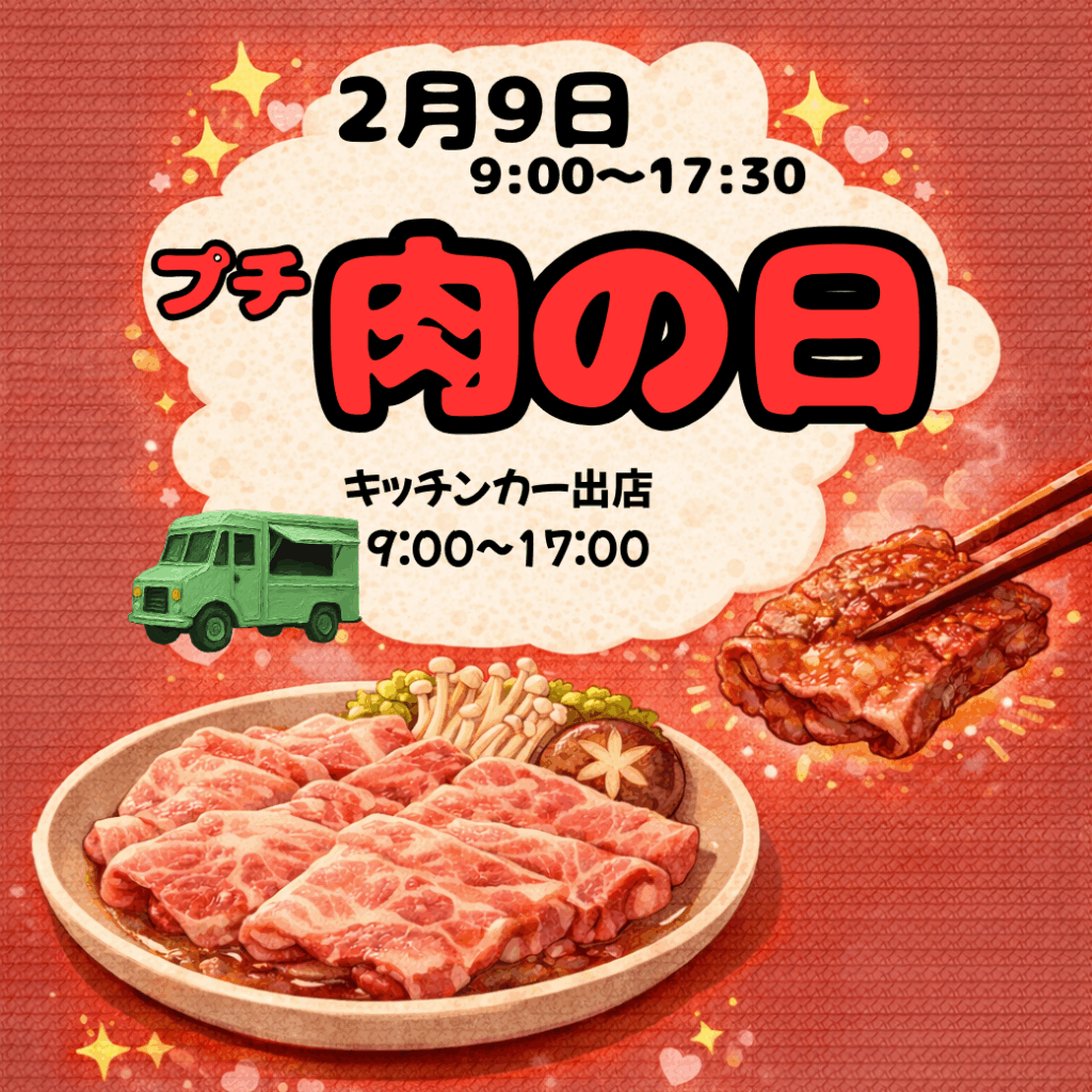 HOME > お知らせ > イベント > イベント お知らせ 【和牛の道の駅/福永畜産直売所】2月9日はプチ肉の日 2026年2月6日 2月9日(月)は ✨ プチ「肉の日」 ✨ 肩ローススライスが \\ 断然お買い得!! // 🚚 キッチンカー販売あります! 1月29日に大好評だった ピンチカツバーガーをはじめ、 若鶏のからあげ・ピンチカツ 黒毛和牛 赤身串 などを販売予定です😋✨ 🎁💕🎁💕🎁💕🎁💕🎁💕🎁 バレンタインギフトご予約受付中! 大切な方への贈り物に、 お肉のギフトはいかがでしょうか? 🎁💕🎁💕🎁💕🎁💕🎁💕🎁 皆さまのご来店を スタッフ一同、心よりお待ちしております😊✨ Post Share Pocket Hatena LINE URLコピー この記事を書いた人 gyudo-fukunaga 福永(株式会社牛道役員) 1級フードアナリスト・管理栄養士・日本箸教育講師・25年間の学校栄養教諭経験を経て、食品安全管理の知識と、現在の食肉業界での実務経験を活かし、消費者の皆様に安心・安全な食品選択のための情報を提供している。 -イベント, お知らせ