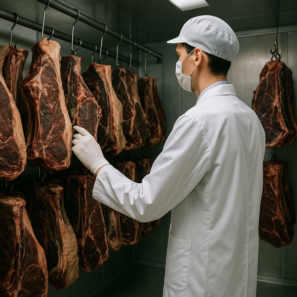 科学的にコントロールされた環境で、酵素が働き、旨味が増し、風味が深まる。温度1℃、湿度5%の違いが、熟成と腐敗を分ける。そして毎日の観察が、最高の状態を見極める。