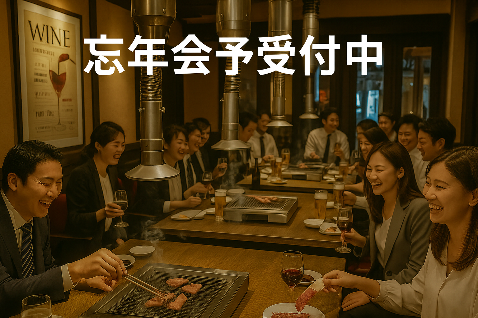 天文館の中心地で、自社ブランド「さつま福永牛」の熟成焼肉を味わえる贅沢な忘年会。